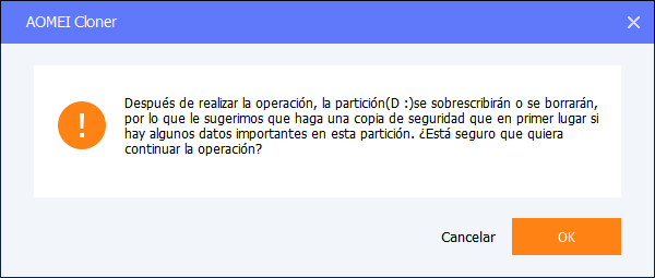 Tenga en cuenta que el disco de destino se sobrescribirá después de esta operación. Es posible que tenga que hacer una copia de seguridad de los archivos importantes cuando sea necesario.