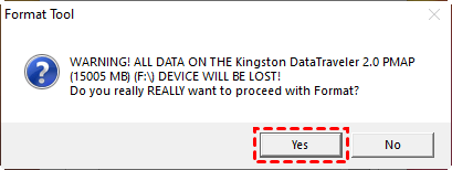 Paso 4. Haga clic en Yes cuando se le pregunte si realmente desea procesar con Formato. Luego, haga clic en OK.