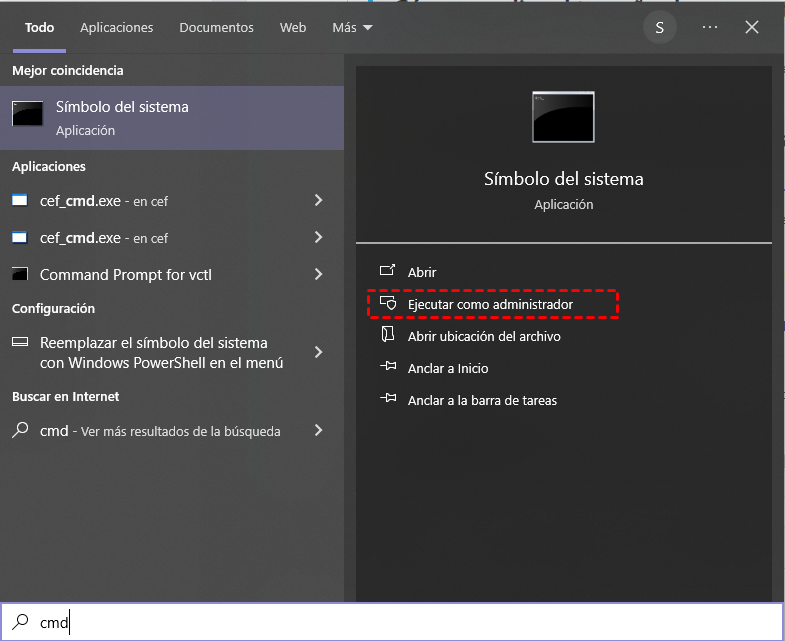 - Escribe comando en el cuadro de búsqueda. Selecciona el primer resultado de la búsqueda y haz clic en Ejecutar como administrador.