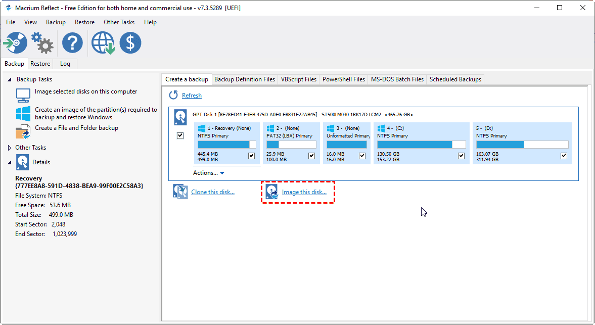 Si Macrium Reflect no puede clonar desde el dispositivo de rescate, puede considerar realizar una copia de seguridad de la imagen en lugar de clonar. Puede realizar una copia de seguridad del PC en un disco duro externo o en una ubicación de red NAS y, a continuación, restaurar la imagen en el nuevo disco duro o SSD. De esta forma, el sistema y los demás datos se transferirán al nuevo disco y seguirán siendo arrancables.