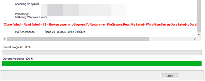 Error: Error en la clonación de macrium reflect