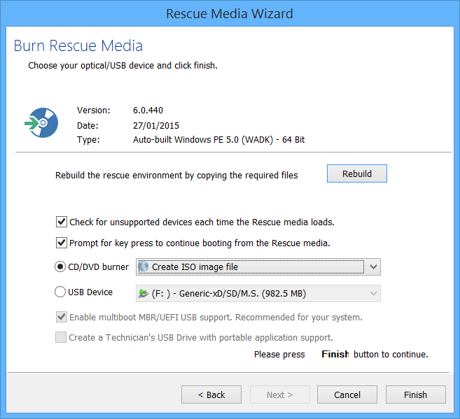 Solución 3: Crear un medio de rescate Macrium para clonar