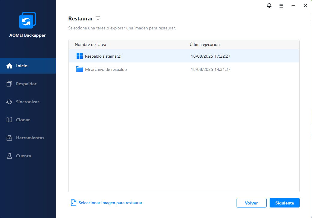 Abra este software, seleccione Restaurar y seleccione Tarea o Seleccione archivo de imagen para buscar la imagen de copia de seguridad y restaurarla en otro disco duro.