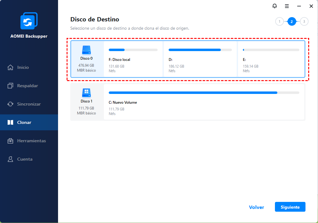 - El disco de destino se sobrescribirá. Haga una copia de seguridad de los archivos importantes si es necesario.