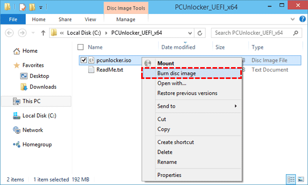 3. En Windows 8/10, haga clic con el botón derecho en el archivo ISO y seleccione Grabar imagen de disco; a continuación, siga las instrucciones que aparecen en pantalla para finalizar el resto de pasos. En Windows 7, podrías considerar usar una grabadora ISO como en su lugar.