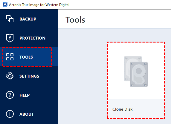 Para clonar un disco duro WD utilizando Acronis True Image for Western Digital, puede hacer clic en Herramientas en la barra lateral y seleccionar Clonar Disco. Luego ingresará al Asistente para Clonar Disco. Simplemente siga el asistente para finalizar el proceso. Los pasos no son complicados.