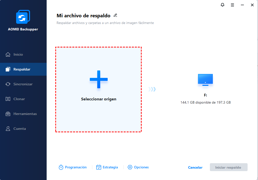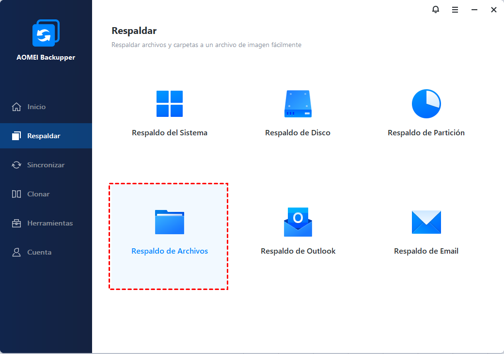 Paso 1. Conecte su disco duro externo al ordenador. Instale e inicie Backupper en su PC. A continuación, haga clic en Respaldar > "Respaldo de archivos".