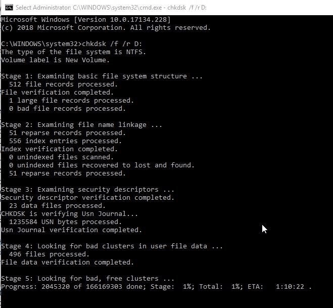 Paso 3. Escribe chkdsk #: /f (reemplaza # con la letra de la tarjeta de memoria SD que se formateó). Presiona Enter para continuar.