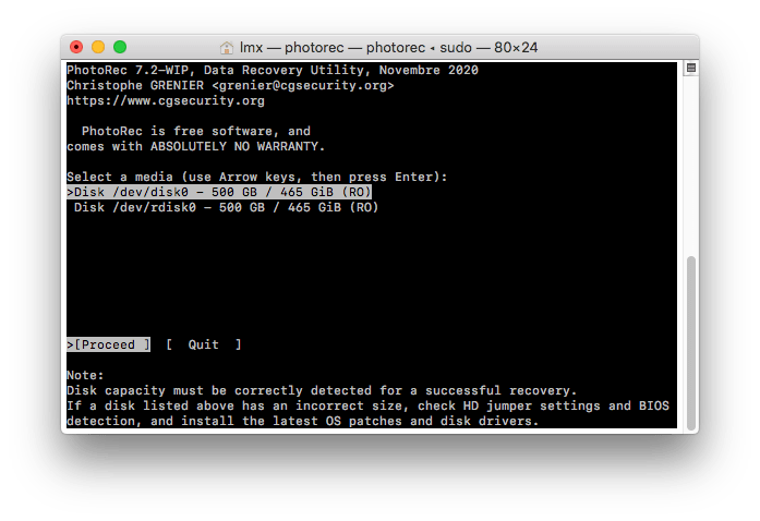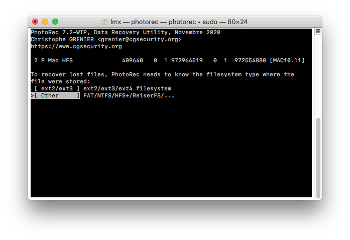 Si desea recuperar archivos de una tarjeta SD en un Mac de forma gratuita, elija la aplicación de código abierto PhotoRec. Se utiliza para recuperar archivos perdidos de discos duros, tarjetas de memoria y CD-ROM. Aunque hay que utilizar comandos para recuperar los archivos, es muy útil para desformatear tarjetas SD en Mac de forma gratuita.