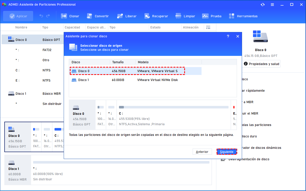 ☞ Si sólo desea migrar el SO Windows a SSD, puede utilizar Migrar SO. Esta función puede migrar datos relacionados con el sistema a la SSD, mientras que otros datos permanecen en el disco de origen.