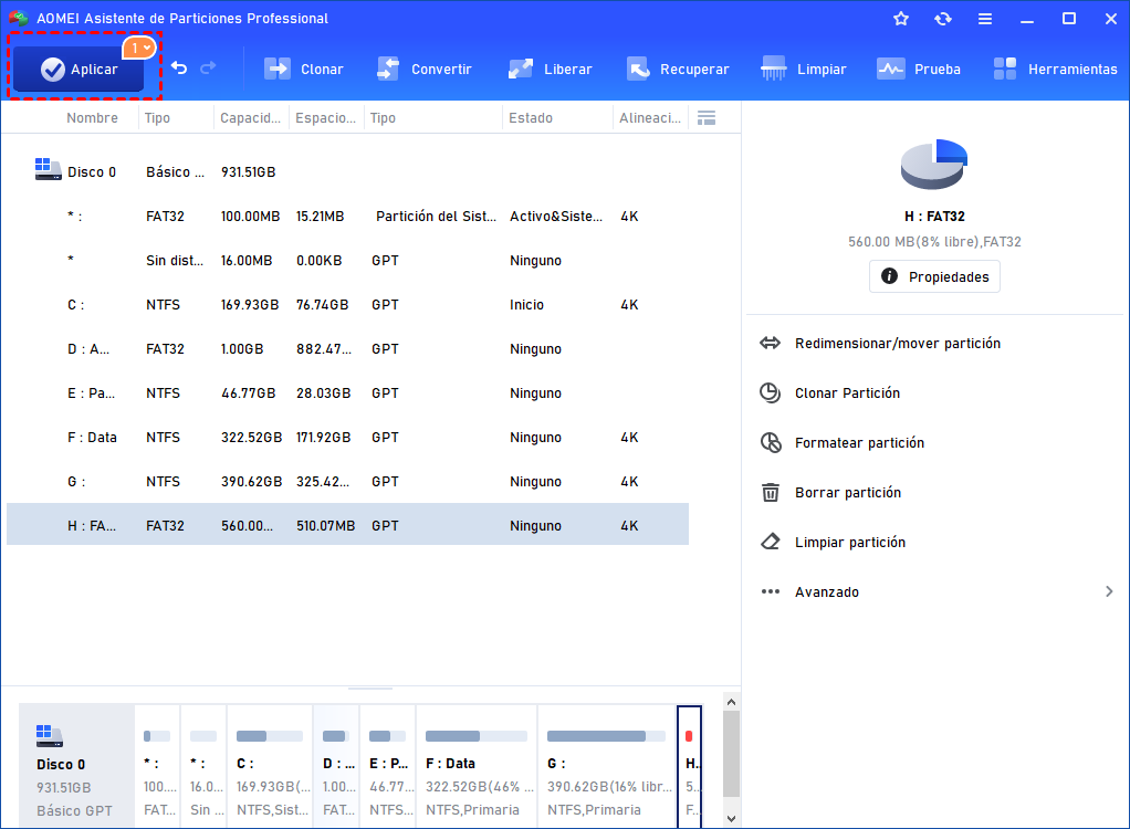 Paso 5. Podrá previsualizar las operaciones realizadas. Para guardar los cambios, debe hacer clic en "Aplicar" en la barra de herramientas.