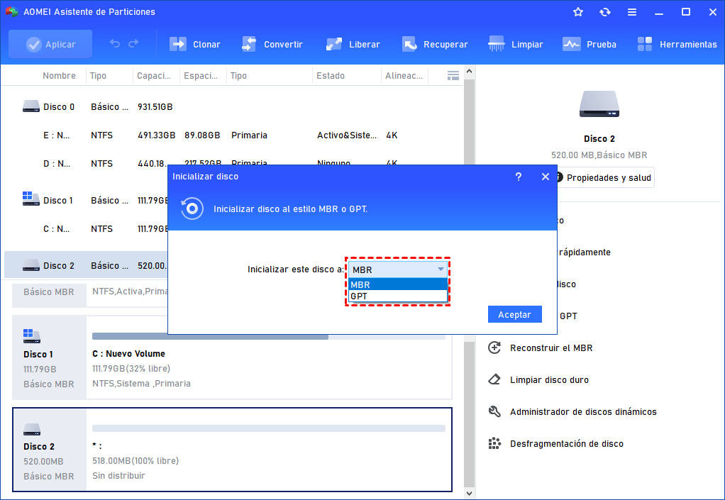 Paso 2. Para evitar cambiar el modo de arranque, configure el estilo de partición (MBR o GPT) para que sea el mismo que el del disco duro antiguo.