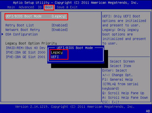 Después de la conversión, debe cambiar de Legacy a UEFI en la BIOS. Asegúrese de que la placa base de tu computadora admita el modo UEFI.