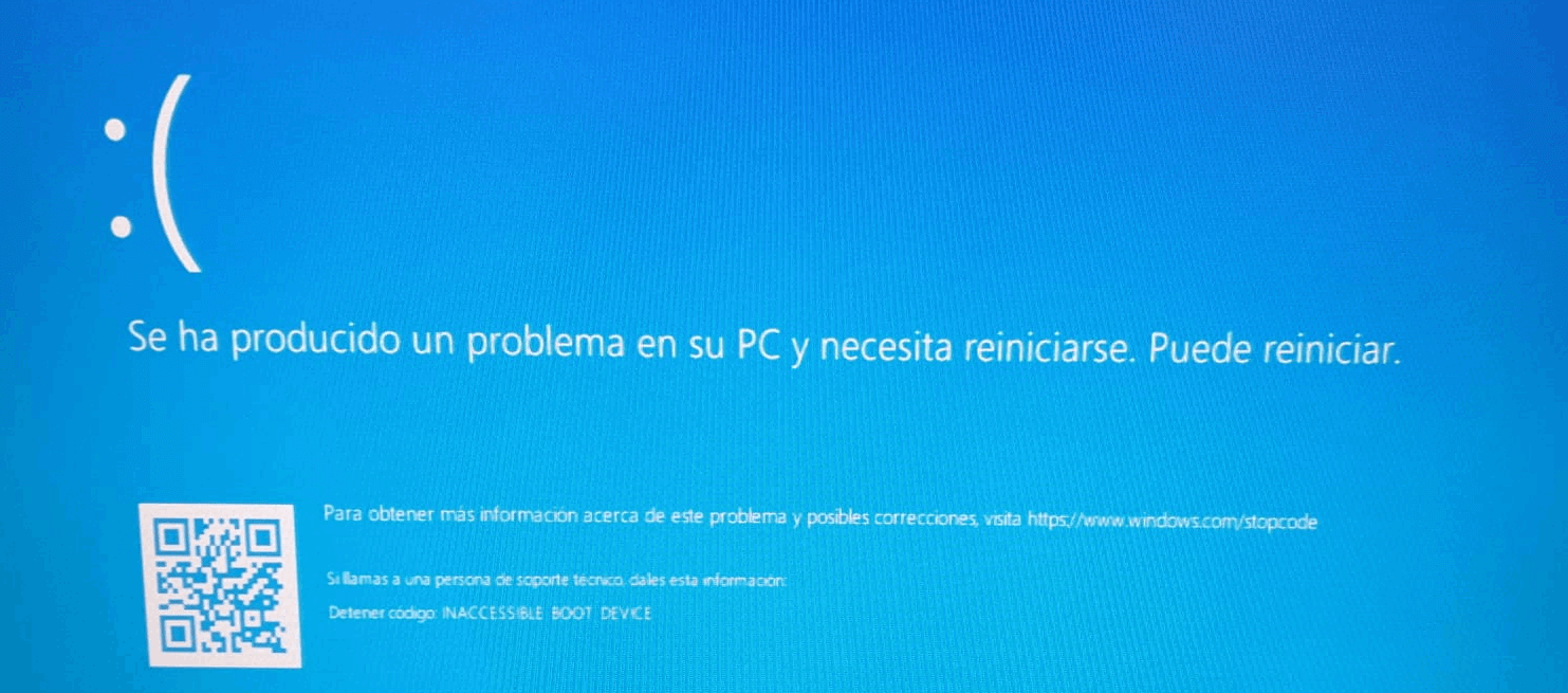 Error: Dispositivo de arranque inaccesible en Windows 10 (SSD)
