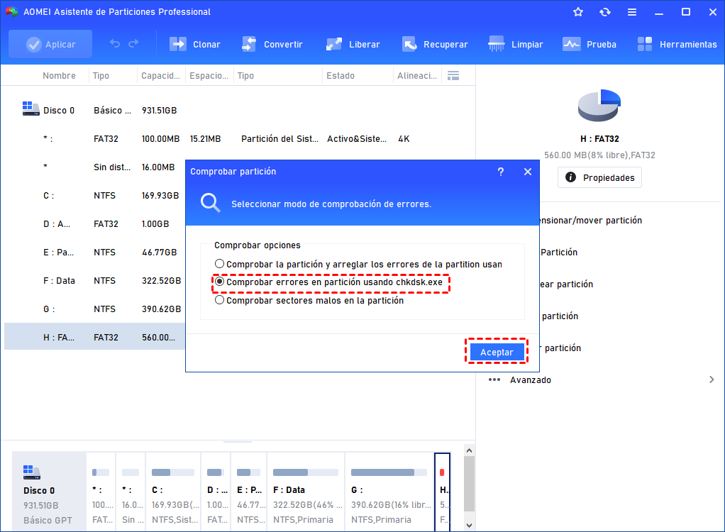 Paso 4. Seleccione el modo de comprobación de errores que desea realizar. Haga clic en "Aceptar" para iniciar la comprobación.