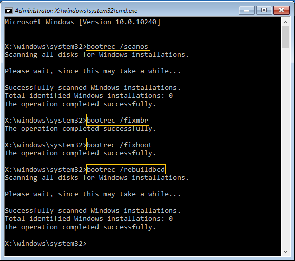 Paso 3: A continuación, utilice el símbolo del sistema para solucionar una partición de unidad requerida falta en Windows 10 problema. A continuación, introduzca el siguiente comando a su vez.