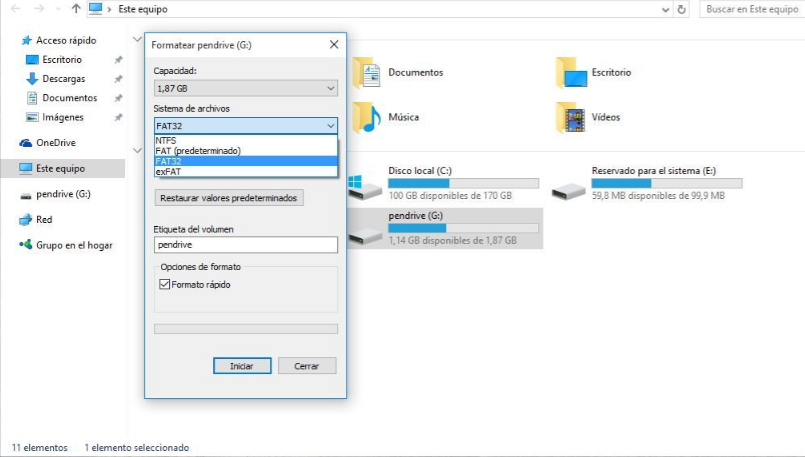 ✘ No puede formatear un disco duro de más de 32 GB a FAT32.