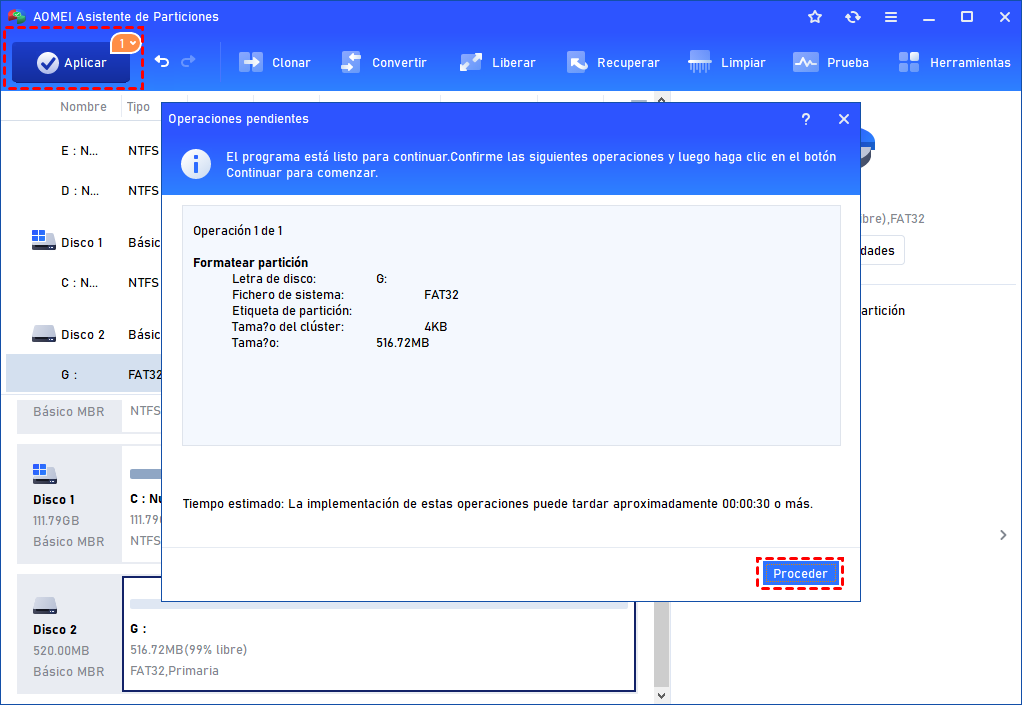 Como se mencionó anteriormente, el proceso de formateo borrará todos los datos existentes en el disco que necesita ser formateado. Pero el Asistente de Partición AOMEI ofrece una función sorprendente: Convertir NTFS a FAT32. Puede ayudarle a convertir el sistema de archivos entre FAT32 y NTFS sin perder datos. A continuación se muestra el tutorial.