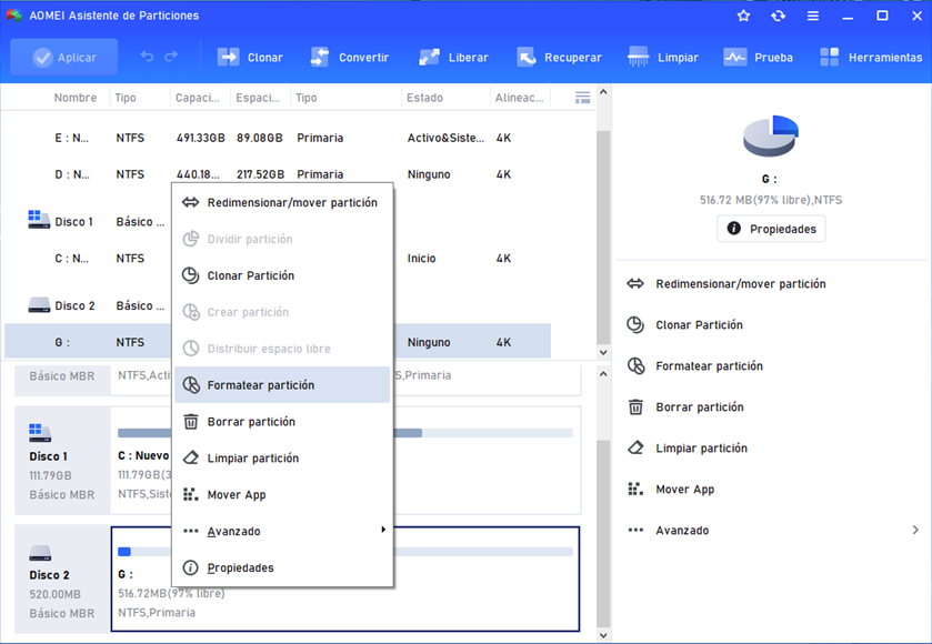 Solo con tres pasos, podría formatear la partición del disco con éxito, incluso la partición está protegida contra la escritura.