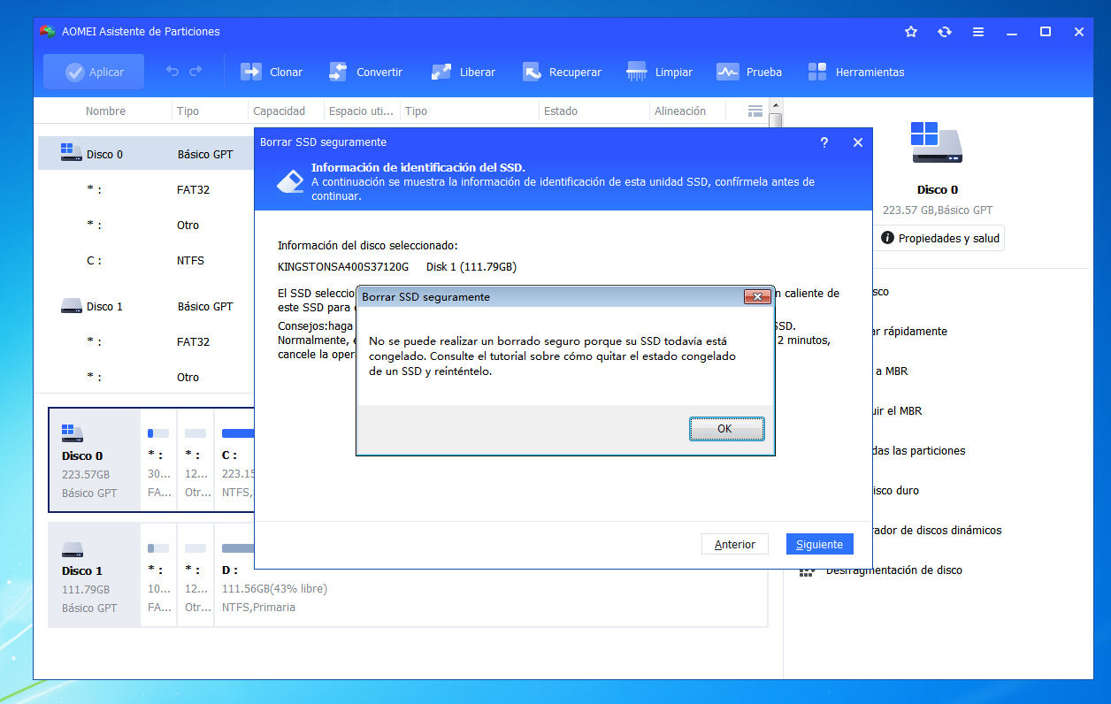 Paso 3. Hay posibilidades de que el SSD seleccionado esté en estado congelado. Si lo está, haga un intercambio en caliente y podrá liberarlo.