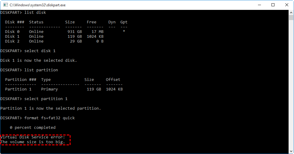 Sin embargo, existe una limitación importante: Windows no permite formatear unidades de más de 32 GB a FAT32. En el Explorador de archivos o la Administración de discos no aparece esta opción, y al usar Diskpart, se muestra el mensaje: “el volumen es demasiado grande para FAT32”.