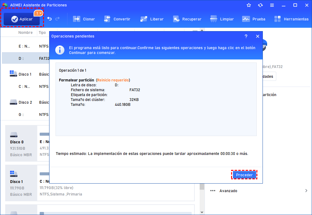 Paso 3. Volverá a la interfaz principal, haga clic en Aplicar y en Proceder tras la confirmación.