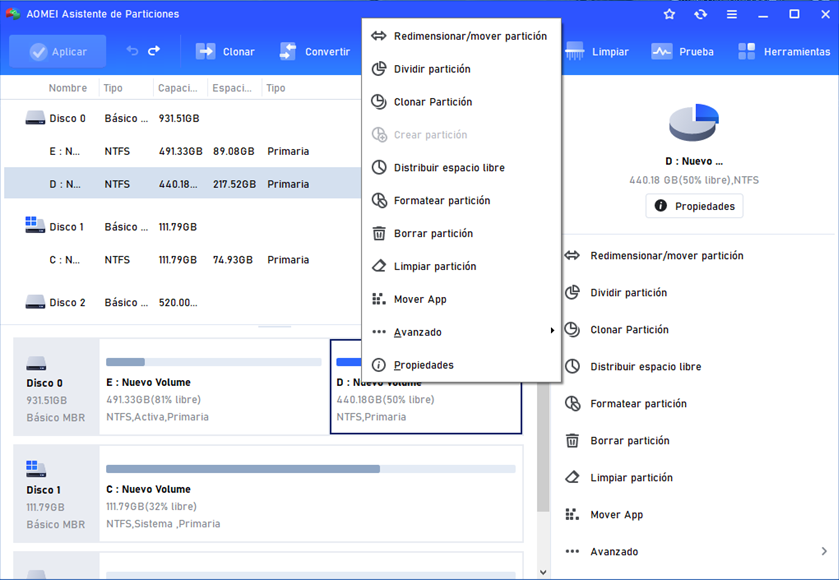 Software de particiones AOMEI