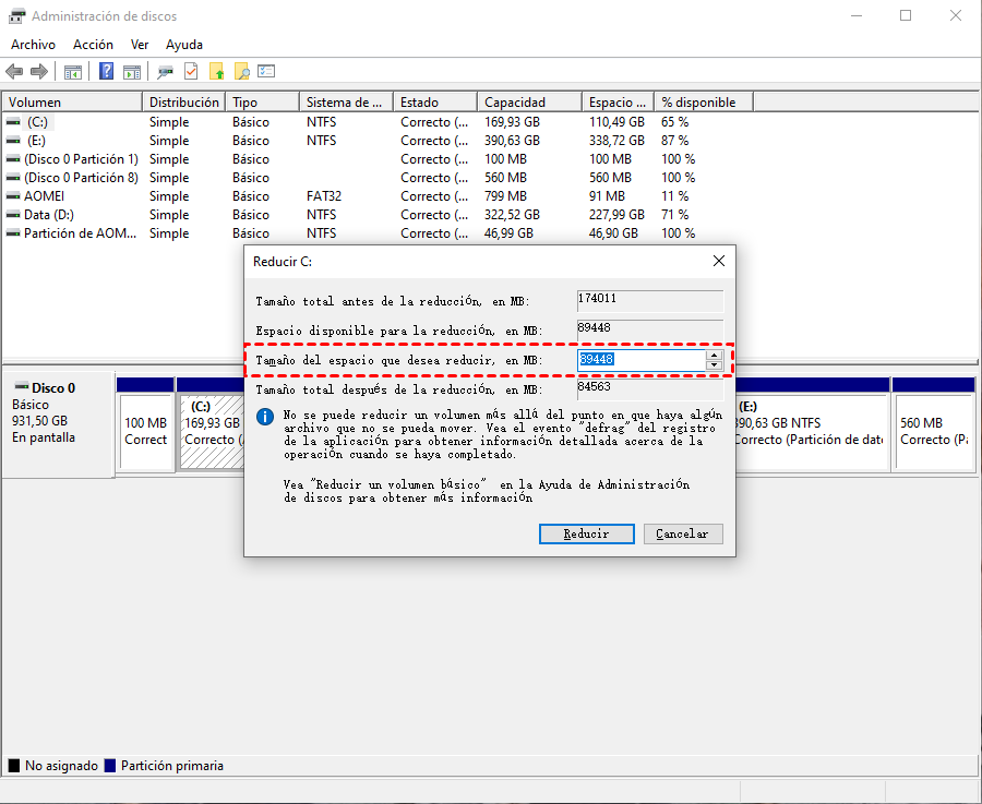 ¿No se puede reducir la unidad C o el volumen en Windows? Descubra por qué ocurre este problema y cómo reducir el espacio fácilmente paso a paso.
