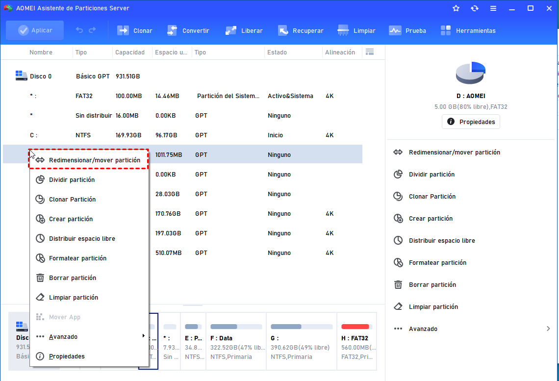 Software de particiones AOMEI