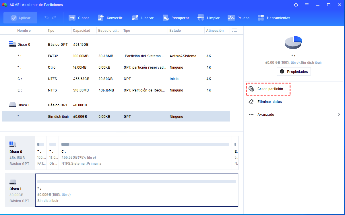 Software de particiones AOMEI es una herramienta muy útil para gestionar discos y particiones, especialmente cuando desea aprovechar completamente el espacio de un disco duro de 3TB y crear nuevas particiones a partir del espacio no asignado.