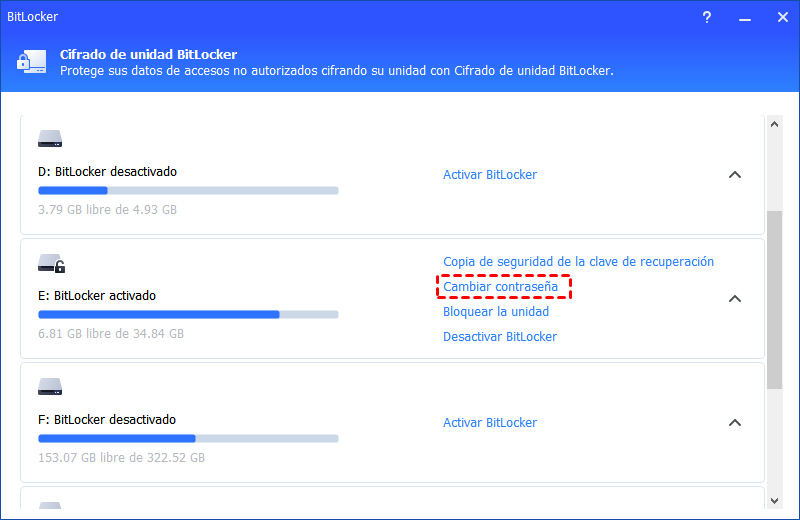 Paso 1. Localiza la unidad de la que deseas cambiar la contraseña. Haz clic en la opción "Cambiar contraseña".