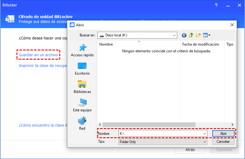 Asegúrate de que el archivo que contiene la clave de recuperación esté seguro y fácilmente accesible para la administración de BitLocker.