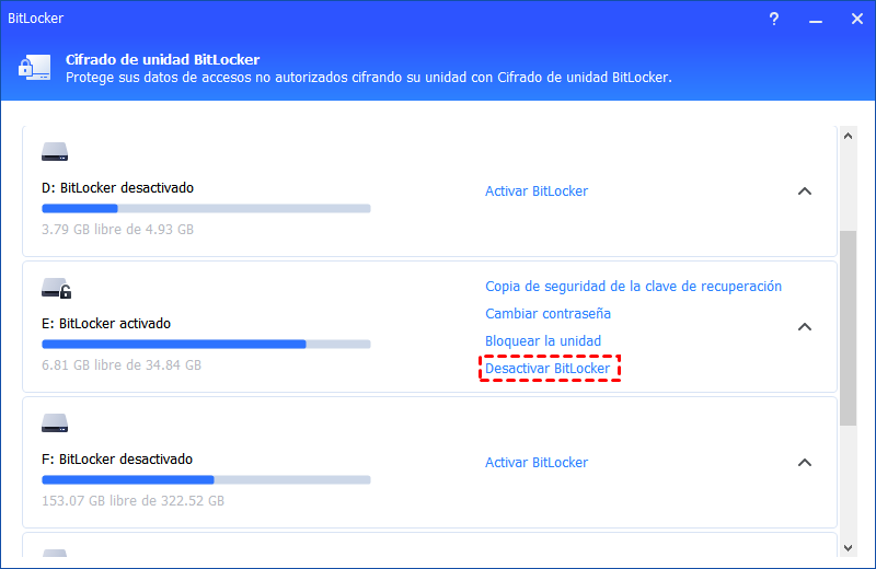 Parte 5. Cómo desactivar BitLocker
