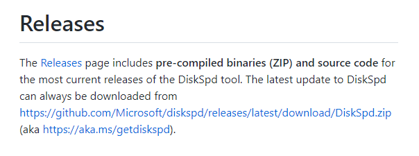 Teniendo en cuenta la demanda de pruebas de velocidad de disco, Microsoft lanzó una herramienta de prueba de velocidad de disco llamada DiskSpd el 20 de septiembre de 2021. Se trata de una aplicación de evaluación comparativa de almacenamiento de línea de comandos gratuita y de código abierto para Microsoft Windows que produce una serie de consultas contra los archivos del ordenador, las particiones o los dispositivos de almacenamiento y muestra la información recopilada como texto en la interfaz de línea de comandos o como un archivo XML.