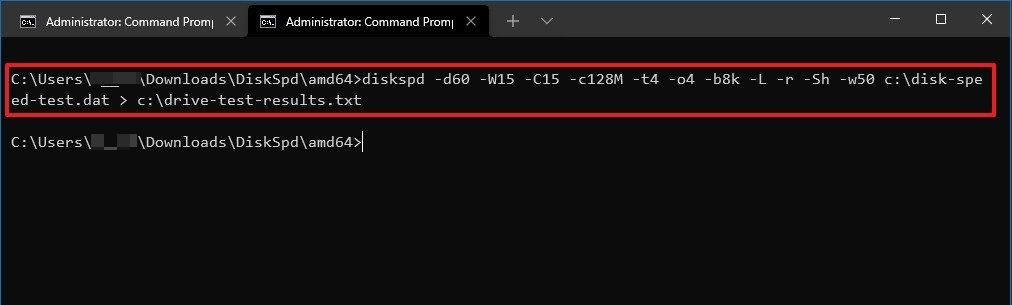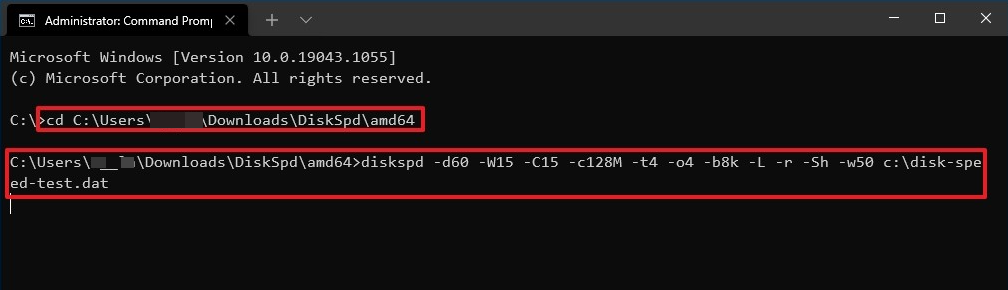 cd \PATH\TO\TOOL (eg. cd C:\Users\username\Downloads\DiskSpd\amd64)