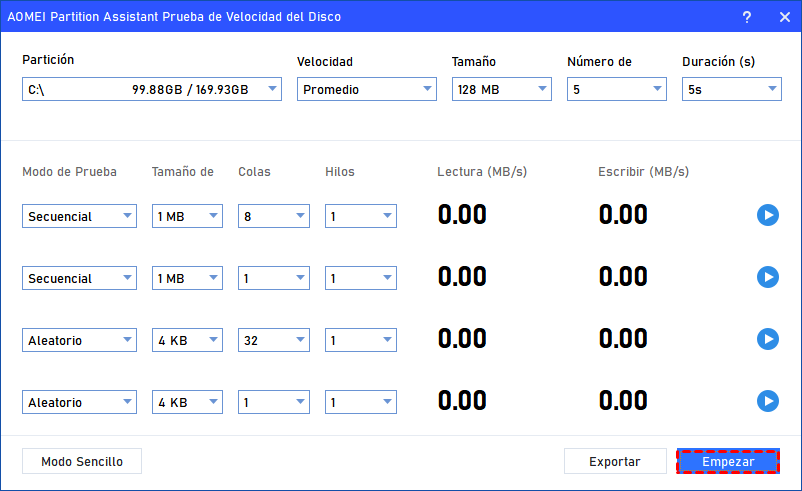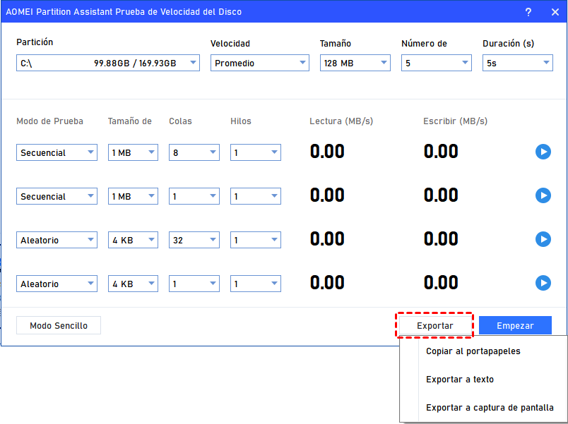▌Herramienta 1. Prueba de velocidad de disco de Software de particiones AOMEI