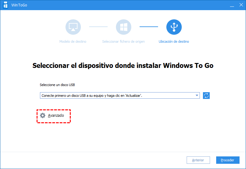 Paso 4. Seleccione el USB como destino y haga clic en "Proceder".