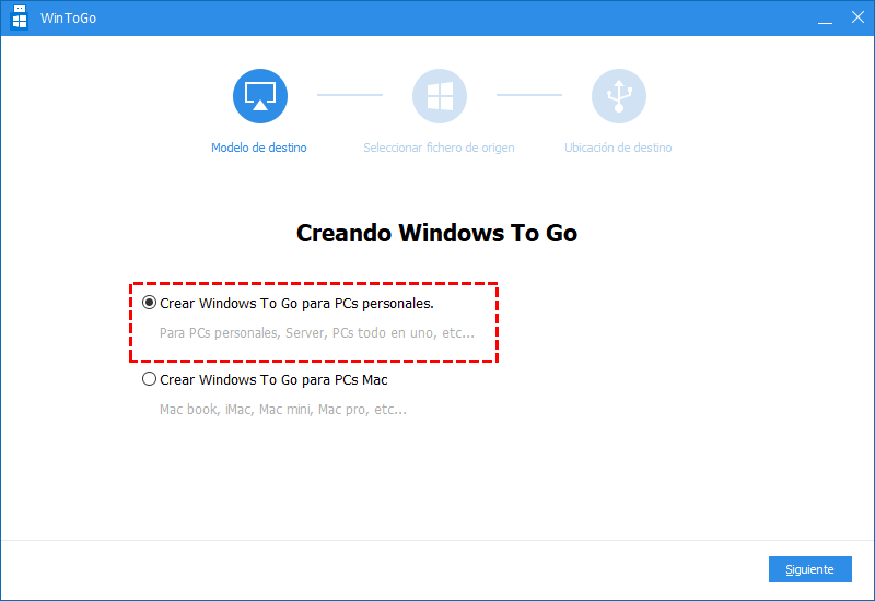 Paso 2. Elija "Crear Windows To Go para computadora personal" y haga clic en "Siguiente".
